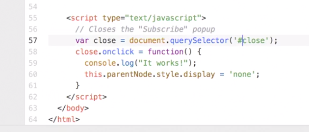 Using de console.log(""); we can see on the console panel the error, but the main error is the 'close' without the respective ID - #